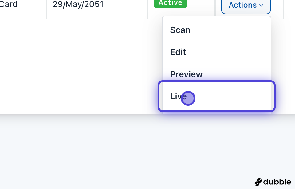 9. Click on Actions -> Live to Check your Updated Card with Product Details