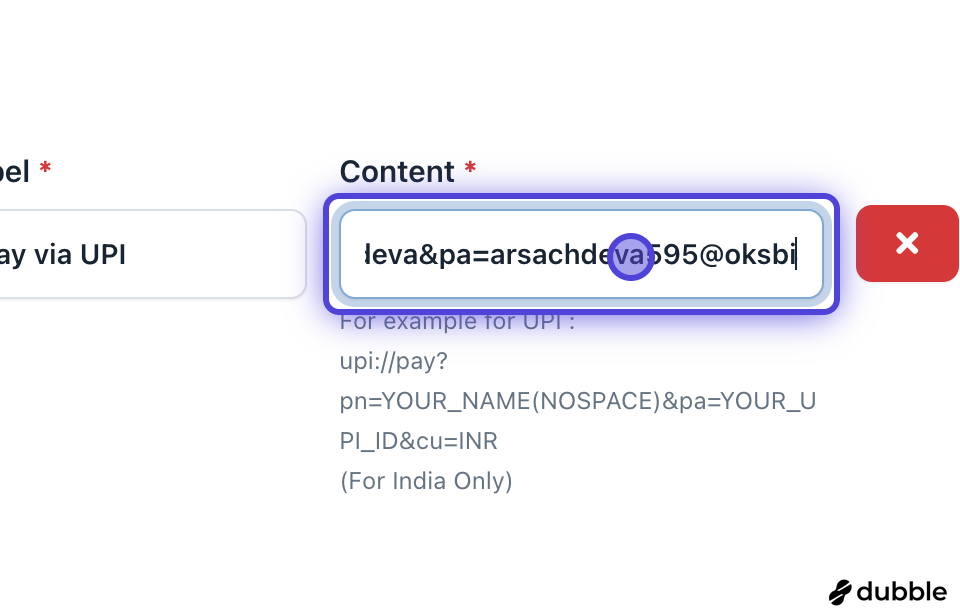 7. Type a label, for example, Pay via UPI
