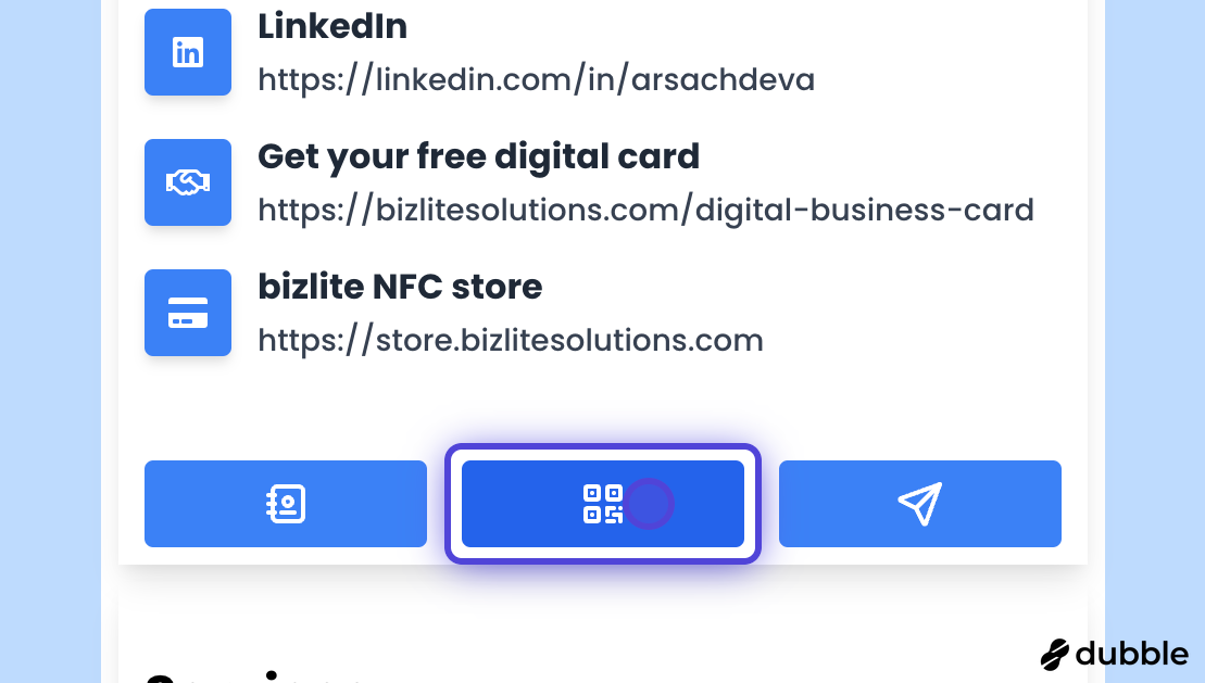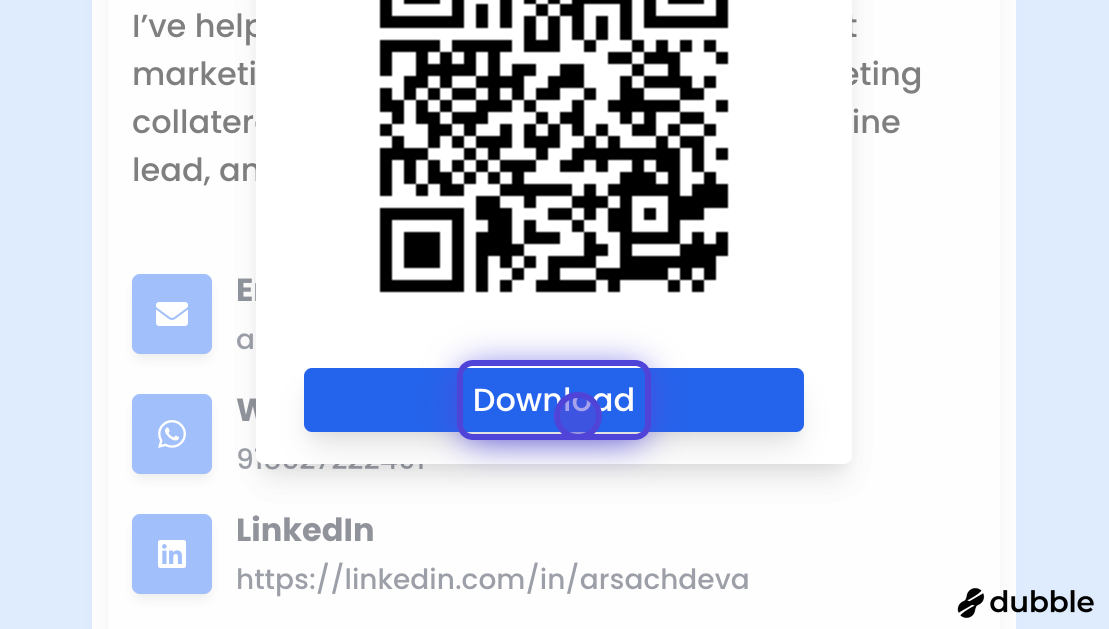 Use this guide to download/find QR code of your digital business card. You can use it on your visiting cards, marketing material, or other physical places.