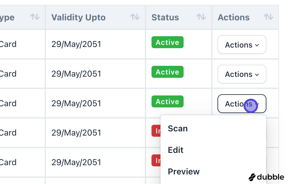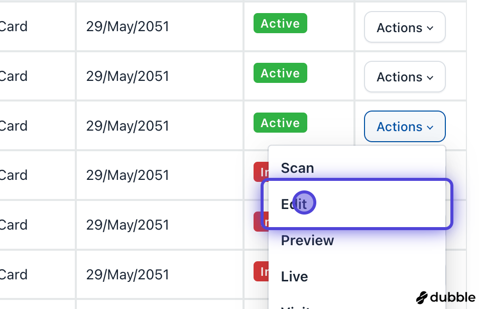 1. Pick your card and Click on Actions