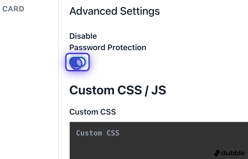 4. Click on Disable Password Protection Toggle